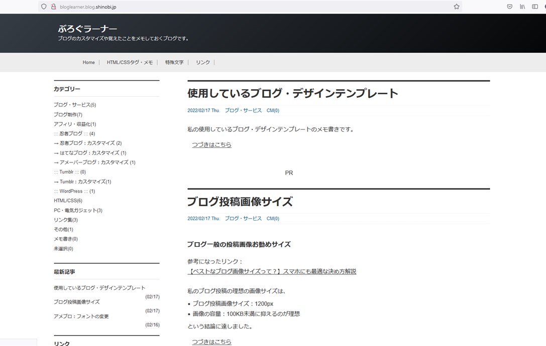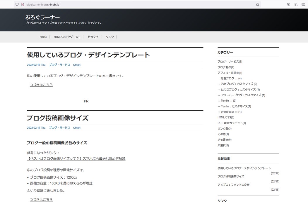 現在のこの忍者ブログのデザイン(テーマ:モノクローム)は、2カラムに落ち着きました。